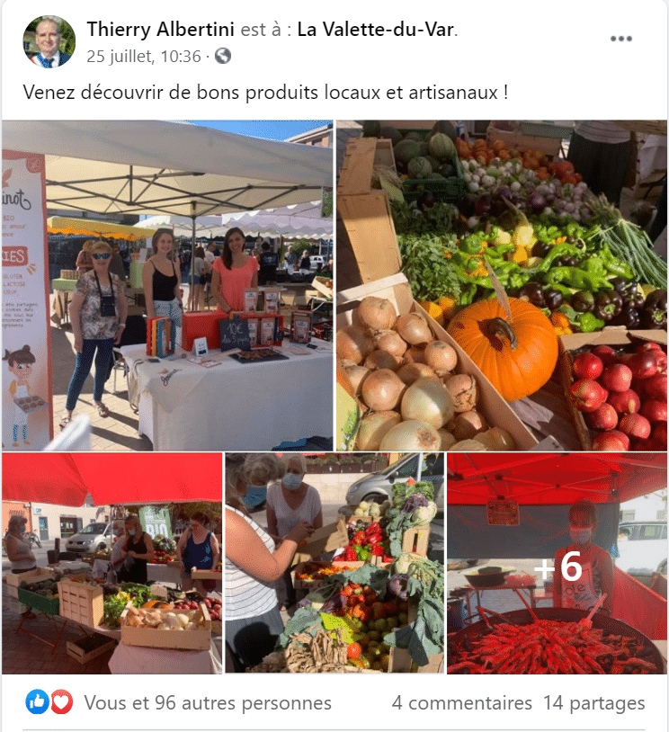 En tant que chargée de communication et marketing, diverses missions m’ont été attribuées. Dès le lendemain de notre entretien de début de stage, je suis entrée dans une dynamique de recherche pour trouver toutes les possibilités de vendre efficacement les cookies, en cet été 2020, fortement perturbé par la crise du COVID. J’ai donc pris contact avec la mairie de La Valette-Du-Var qui était sur le point de lancer un marché de producteurs locaux tous les samedis matins de 8h à 12h30 sur la place Jean-Jaurès !